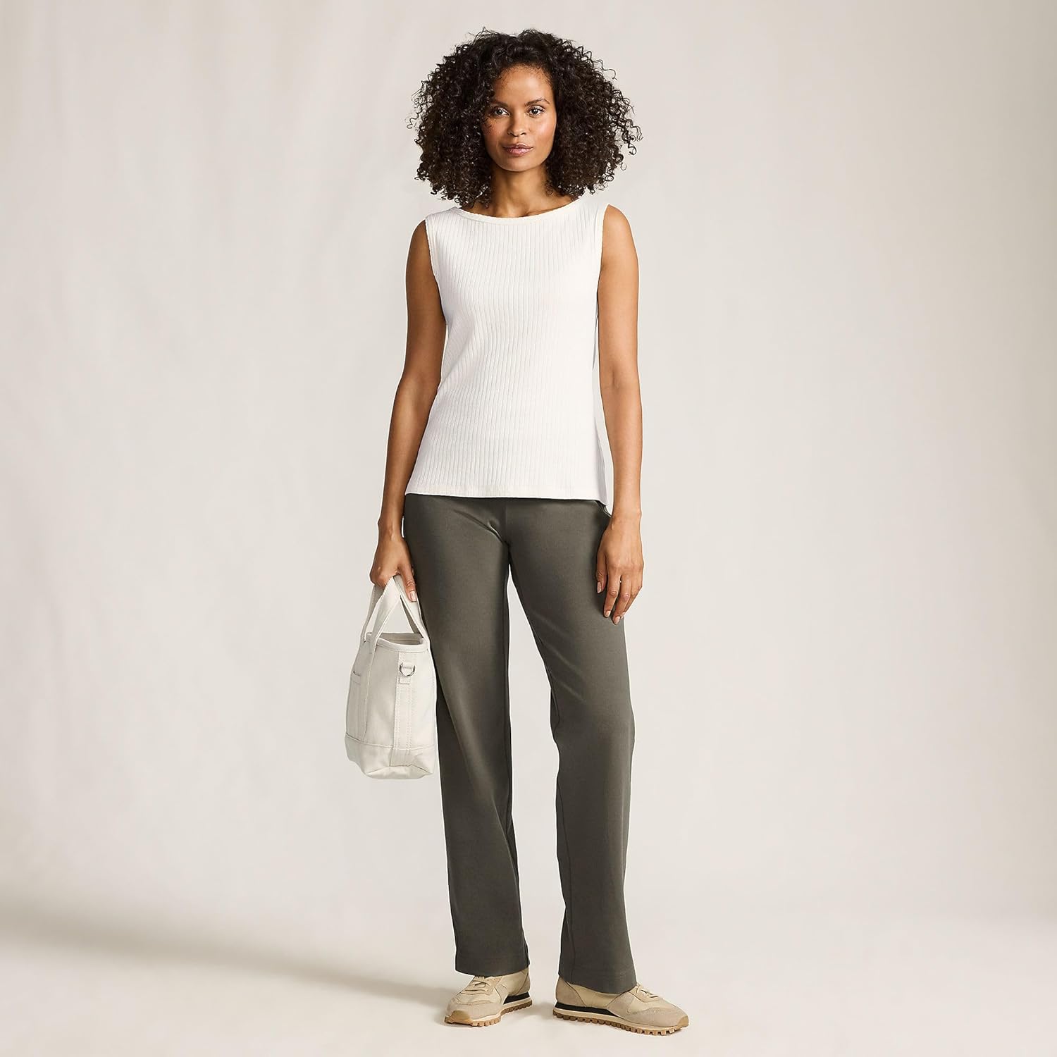 Customers find these pants comfortable, well-made, and appreciate their wonderful stretch knit material. The pants have a nice wide waistband and look more polished than sweats, with one customer noting they’re versatile enough to wear out shopping. Customers disagree on the sizing and length, with some finding the legs too wide and the rise too short.